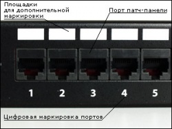 С лицевой стороны панели на порты нанесена цифровая маркировка. С обратной стороны панели контакты имеют цветовую и цифровую маркировку. Имеются площадки для дополнительной маркировки.